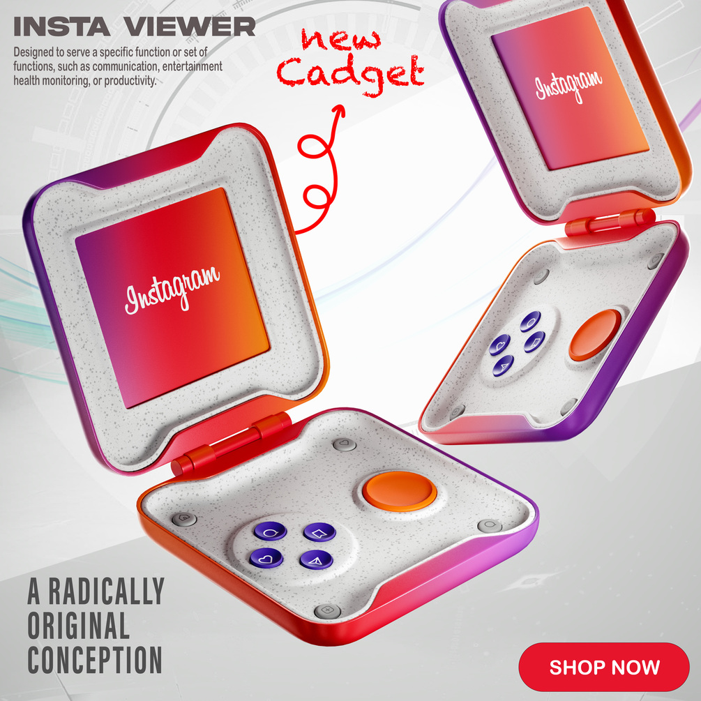 stylized Instagram-inspired gadget – a unique, compact design blending retro handheld vibes with modern branding. Perfect for 3D scenes, concept art, games, and animations.